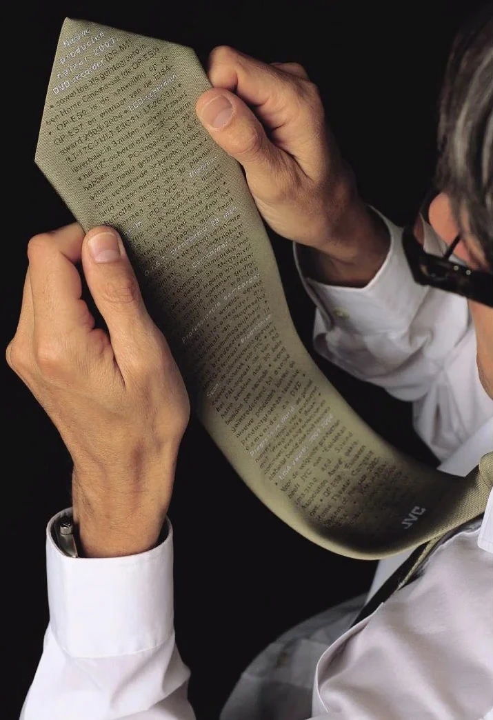 Embroidered upside down on the fabric were all the latest product highlights. Allowing dealers to discreetly glance down and refresh their memory during conversations.