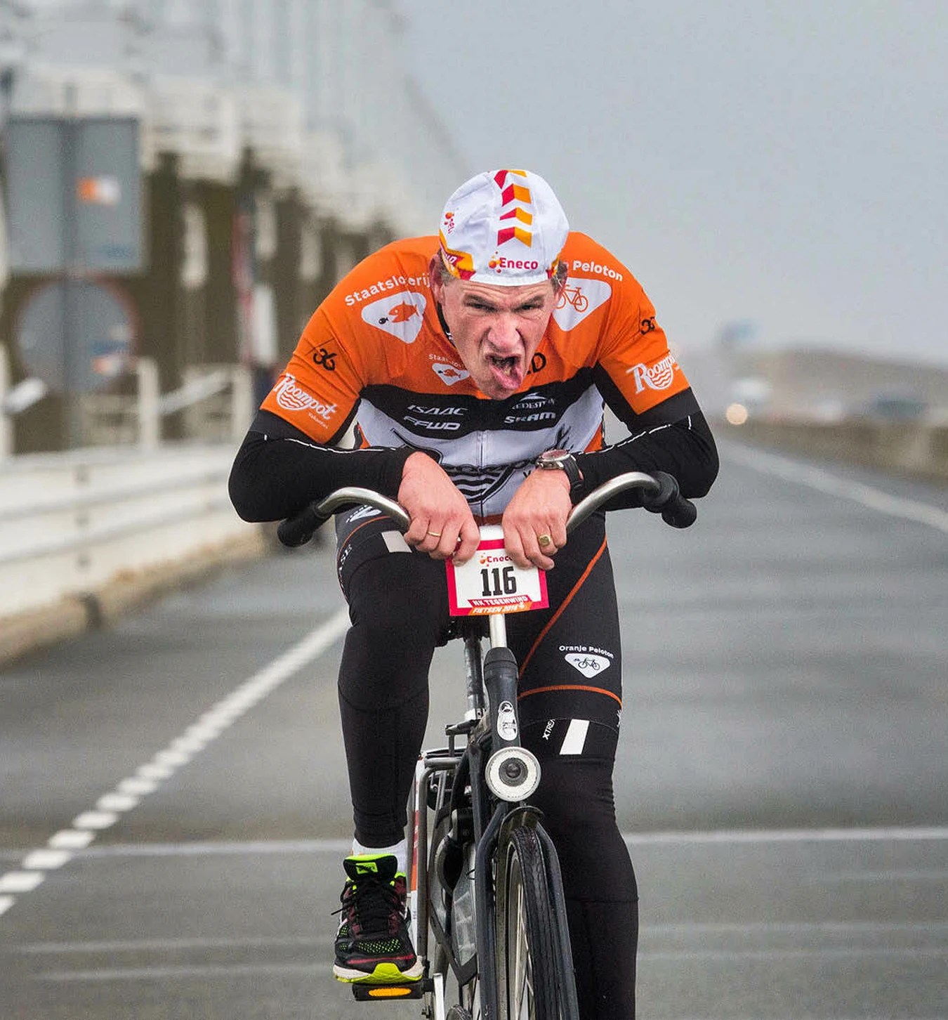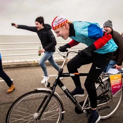 So, we created the Dutch Headwind Cycling Championship. A race where people battle the elements on a standard single-speed omafiets (no fancy racing bikes, just old-school Dutch city bikes).