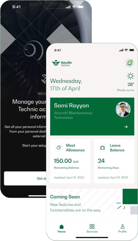 We reimagined the Saudia Technic Employee App as Wingman for Employees. An intuitive, all-in-one digital assistant that enhances self-service, collaboration and safety.